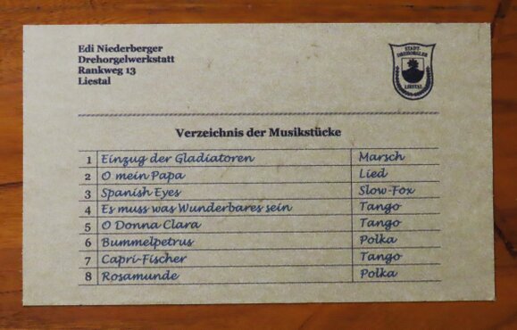 - 1 neue mit europäischen Stücken (siehe Walzenzettel unten)